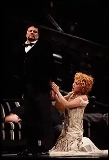 Among her career highlights was the creation of the role of Sardulla in the US premiere of Menotti's The Last Savage (Met, 1964). In 1974, she made a film (directed by Götz Friedrich) of Strauss' Salome with the Vienna Philharmonic under Karl Böhm. Pierre Boulez chose her to sing the title role in the first performance of Friedrich Cerha's completed version of Alban Berg's Lulu (Paris, 1979). In 1981 she performed the role of Mimi in La bohème at the Metropolitan Opera in New York.[3] On 26 September 1989, she sang all three soprano roles in Puccini's Trittico, Giorgetta in Il tabarro, Angelica in Suor Angelica and Lauretta in Gianni Schicchi (Met). She created the role of Marie Antoinette in the premiere of John Corigliano's The Ghosts of Versailles (Met, 1991). At the opening night of the Met's 1994 season, she sang Nedda in Pagliacci opposite Luciano Pavarotti and Giorgetta in Il tabarro opposite Plácido Domingo.[4]