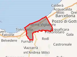 Terme Vigliatore (Sicilian: Tèrmini Vigghiaturi) is a comune (municipality) in the Metropolitan City of Messina in the Italian region Sicily, located about 160 kilometres (99 mi) east of Palermo and about 35 kilometres (22 mi) west of Messina at the mouth of the Patrì river. Terme Vigliatore borders the following municipalities: Barcellona Pozzo di Gotto, Castroreale, Furnari, Mazzarrà Sant'Andrea, Rodì Milici.