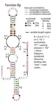 ![]() Consensus secondary structure of Termite-flg RNAs | |