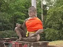 The statue was called the "Leper King" because discolouration and moss growing on it was reminiscent of a person with leprosy, and also because it fit in with a Cambodian legend of an Angkorian king Yasovarman I who had leprosy.[1] The name that the Cambodians know him by, however, is Dharmaraja,[2] as this is what was etched at the bottom of the original statue.