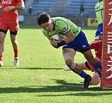 Teruya Goto (後藤 輝也, Gotō Teruya, born December 18, 1991) is a Japanese rugby sevens player. He competed for Japan at the 2016 Summer Olympics in Brazil.[1][2][3][4] He scored the first try in their upset against New Zealand at the Olympics.[5][6]