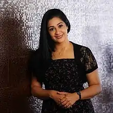 She made her debut as a heroine opposite Mammootty, in the movie Pattalam, directed by Lal Jose in the year 2003.[3] She was handpicked by Lal Jose when she was successfully hosting the popular TV show Hello Good Evening in Kairali TV. She took a break from movies, after her debut, though she was active in TV shows and in TV commercials. She has made a comeback into the movie industry in the year 2015 playing the role of a journalist in the movie, Njan Samvidhanam Cheyyum by Balachandra Menon. This was followed by her role as "Rajamma" in the movie, Rajamma @yahoo. She played the pivotal role of an advocate, Adv. Anu G. Nair for the movie Marupadi, directed by V. M Vinu and the role of Sujatha, a mother of two main characters, in the movie, Goldcoins by Pramod Gopal, both of which saw their releases in 2016 and 2017 respectively.