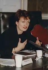 She was appointed Secretary of State at the Department for Culture, Media and Sport following the 2001 election, replacing the sacked Chris Smith.[17] One of her main concerns as Culture Secretary was television broadcasting. She blocked the BBC's plans for the digital channel BBC3, on the grounds that they were insufficiently different from commercial offerings, and imposed extra conditions[18] on BBC News 24 after it was criticized on the same grounds by the Lambert Report.[19] She was responsible for the Communications Act 2003 which established a new media regulator, OFCOM.[20][21] It also relaxed regulations on ownership of British television stations, though, following a rebellion in the House of Lords, a 'public interest' test was introduced as a compromise.[22]