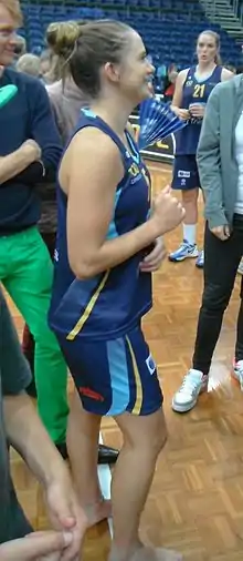 On 22 June 2015, Lavey signed a two-year deal with the Perth Lynx.[7] She was later named the inaugural captain of the Lynx after impressing both her teammates and coaches with her work ethic and leadership on and off the training court during pre-season.[8] On 9 December, she was named in the WNBL Team of the Week for the first time in 2015–16.[9] She led the Lynx to a second place regular season finish with a 16–8 win–loss record, and went on to score 15 points in the team's semi-final win over the first-seeded Townsville Fire.[10] With the win, the Lynx advanced to the WNBL grand final for the first time since 1999.[11] There they were outclassed by the defending champion Townsville (who made it to the grand final via the preliminary final), losing the best-of-three series 2–0. In 26 games for the Lynx in 2015–16, she averaged 10.2 points, 3.4 rebounds, 3.4 assists and 1.2 steals per game.