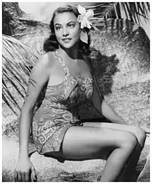 With her looks and figure, Prendergast gained notice while singing and dancing at London's Pigalle nightclub. She began doing bit parts in British films, mostly in "exotic" roles, such as performing the Dance of the Seven Veils in the film Song of Paris. She caught the attention of Warner Brothers, with whom she signed in the early 1950s.[3] She appeared as a Polynesian girl in His Majesty O'Keefe, starring Burt Lancaster, and then in a larger role in Manfish, an adventure film shot in her native Jamaica. She became best known, however, for her glamor photos in magazines and her "scandalous affairs", such as a widely publicized 1955 incident in Rome, in which King Farouk of Egypt and an unnamed Italian prince allegedly came nearly to blows in vying for her affection.[4] Although known for her imperious temper and connections with European royalty, these stories were almost certainly exaggerated.