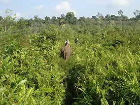 During drought periods, the forest is susceptible to wildfires. In the October 2006 fires, 1 km2 of the park was burnt.[5] According to 2009 WWF survey, the population of Sumatran elephants had reached 200 in the park, and around 350 elephant in Riau Province.[6]