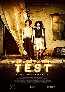 Test (Russian: Испытание) is a 2014 Russian film about a doomed love triangle, set in 1949 on the prairie of the Kazakh Soviet Socialist Republic in present-day Kazakhstan, near the Semipalatinsk nuclear test site. The film does not have dialogue. The main character, Dina, lives with her father Tolgat on a serene farm that is near a nuclear test site. Dina is gentle, has a strong attachment to nature, and loves art. She loves to scrapbook and collage with the leaves and sticks. In one of her scrapbooks she creates a plane flying away representing her dream to one day travel and escape the isolation she feels in the remote farmland. "Unspecified in the movie itself, the geographical setting can be deduced as somewhere near Semey in modern-day Kazakhstan, then known as Semipalatinsk — notorious as the site of the USSR’s first nuclear test, in August 1949."[1]