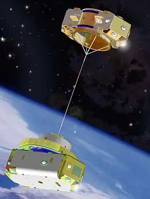 A tether satellite is a satellite connected to another by a space tether. A number of satellites have been launched to test tether technologies, with varying degrees of success.