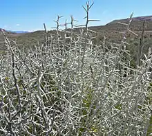 Tetradymia axillaris is a flowering plant in the daisy family known by the common names longspine horsebrush[1] and cottonthorn. This is a plant of the sagebrush and desert plant communities of the southwestern United States.