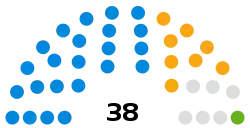 Tewkesbury Borough Council elects 38 Councillors from 20 wards. Following the May 2019 local elections, Tewkesbury Borough Council comprises 23 Conservative Councillors, 8 Liberal Democrat Councillors, 4 Brockworth First Councillors, 2 Tewkesbury and Twyning Independent Councillors and 1 Green Party Councillor.[2] The current leader of Tewkesbury Borough Council is Rob Bird and the current Borough Mayor (a ceremonial role) is Gill Blackwell.