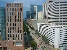 ![]() Aerial view of the Texas Medical Center's main campus looking south from Hermann Park. Brays Bayou is visible at the top of the image. | |