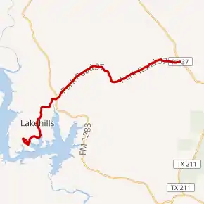 Park Road 37 (PR 37) is a state highway located in the Texas Hill Country. The highway runs from Bandera County Park (formerly Avalon State Park) at the shores of Medina Lake in Lakehills to SH 16 northwest of Helotes. PR 37 has been noted as an excellent drive by motorcyclists for its views, tight bends and hills.[2]