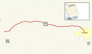 State Highway 184 (SH 184) is a Texas state highway running 11.079 miles (17.830 km) from Bronson east to Hemphill. This route was designated on November 30, 1932, along its current route,[2] and traverses several highly scenic vistas as it meanders through the Texas landscape. This highway was SH 87A before March 19, 1930, and this highway was erroneously omitted from the March 19, 1930 highway log.