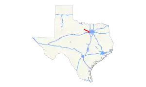 | Azle | 42.6 | 68.6 | interchange; west end of freeway; no direct westbound exit (FM 730 north exit serves both directions) | ||