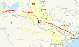 The entire route is in Brazoria County. All exits are unnumbered.