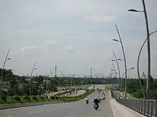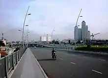 Thủ Thiêm Bridge is a 6-lane bridge in Ho Chi Minh City, the largest city of Vietnam, opened in 2008. The bridge links District 2 with Bình Thạnh District, near downtown District 1. This bridge is an important link between existing downtown of Ho Chi Minh City with Thu Thiem New Urban Area. The cost estimate for construction of the bridge was US$60 million, implemented by a consortium of Vietnamese contractors. The progress was delayed due to delay in land compensation – a big problem in project management faced by many investors in Vietnam.[1]