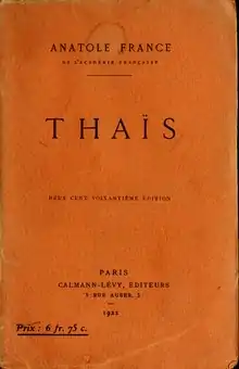 Thaïs is a novel by French writer Anatole France, published in 1890. It is based on events in the life of Saint Thaïs of Egypt, a legendary convert to Christianity who is said to have lived in the 4th century.[1] It was the inspiration for the 1894 opera of the same name by Jules Massenet.