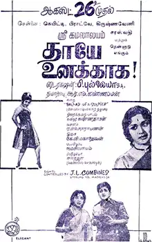Thaaye Unakkaga (transl. Mother, for you only) is a 1966 Indian Tamil-language film directed by P. Pullaiah and written by Kannadasan. The film has an ensemble cast. The film had musical score by K. V. Mahadevan. It is a remake of the 1959 Russian film Ballad of a Soldier.[2] The film was released on 26 August 1966.[3]