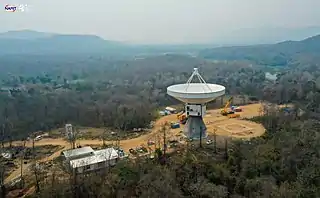 The Thai National Radio Telescope is a 40 m single-dish short-millimetre telescope located in Huai Hong Khrai Royal Development Study Centre at Doi Saket District in Chiang Mai Province, and operated by the National Astronomical Research Institute of Thailand (NARIT).[1][2] The radio observatory operates in the frequency range of 300 MHz – 115 GHz.[3] The contract for the construction of the telescope was awarded March 2017 to the Germany company MT Mechatronics, a subsidiary of OHB SE.[4]