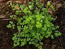 The leaves have compound blades divided into a few or many segments of varying shapes, often with three lobes, and are borne on long, slender petioles. The blades are hairless to slightly fuzzy and glandular.