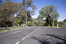![]() Looking south-east, towards the Murrumbidgee River, on North Street in Tharwa. | |
