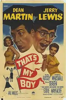 That's My Boy is a 1951 American semi-musical comedy film directed by Hal Walker and starring the comedy team of Martin and Lewis and marked the first time that Dean Martin and Jerry Lewis actually had "roles" as opposed to previous efforts in which they played an extension of their nightclub act. It was released on May 13, 1951 by Paramount Pictures.
