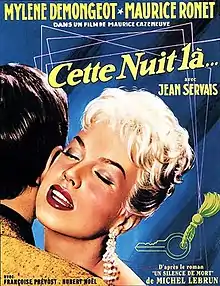 That Night (French: Cette nuit là...) is a 1958 French crime drama film directed by Maurice Cazeneuve and starring Mylène Demongeot, Maurice Ronet and Jean Servais.[1] It is an adaptation of the 1957 novel Un silence de mort by Michel Lebrun.