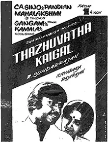 Thazhuvatha Kaigal (transl. Hands that never hugged) is a 1986 Tamil-language romantic drama film, directed by R. Sundarrajan and produced by G. Sornambal, R. Ganapathy and Elango. The film stars Vijayakanth, Ambika, Senthil and Anuradha. The film had musical score by Ilaiyaraaja.[1]