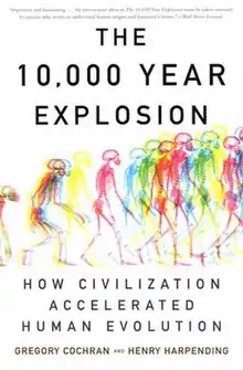 The 10,000 Year Explosion: How Civilization Accelerated Human Evolution is a 2009 book by anthropologists Gregory Cochran and Henry Harpending. Starting with their own take on the conventional wisdom that the evolutionary process stopped when modern humans appeared, the authors explain the genetic basis of their view that human evolution is accelerating, illustrating it with some examples.[1]