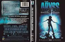 The first THX-certified LaserDisc title of the Special Edition Box Set was released in May 1993, in both Widescreen and Full Screen formats,[50] and was a best-seller for the rest of the year. The Special Edition was released on VHS in 1996 as a part of Fox Video's Widescreen Series with a seven-minute behind-the-scenes featurette with footage that did not appear in the Under Pressure: The Making of The Abyss documentary that was included on the Laserdisc and DVD releases.[51] The film was released on DVD in 2000 in both one and two-disc editions and featured animated menus,[52] both the theatrical and Special Edition versions of the film via seamless branching along with—on the second disc—the Laserdisc's extensive text, artwork and photographic documentation of the film's production, a ten-minute featurette and the sixty minute documentary Under Pressure: The Making of The Abyss.[53]
