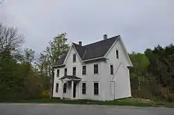 The entrance is sheltered by a portico with a low-pitch gabled roof, and is flanked by pilasters.[2] The house was originally attached via a connecting ell to a barn; both of these structures have been removed, leaving a flushboard outline of the ell on the right wall.