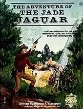 The Adventure of the Jade Jaguar is a solitaire adventure where a single player must foil the villainous Jade Jaguar, who has roused natives into a crude fighting force, and seized explorer Professor Jackson and her colleagues.[2]