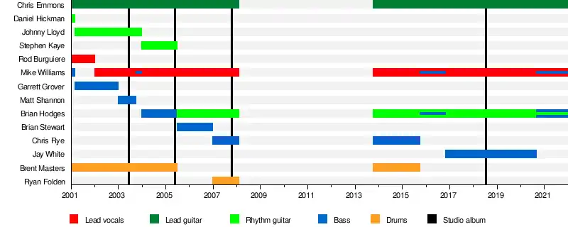 - Mike Williams – lead vocals (2002–2008, 2013–present), bass (2001, 2003–2004, 2015–2016, 2020–present)