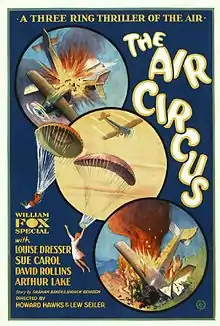 The Air Circus is a 1928 American drama film directed by Howard Hawks and starring Arthur Lake, Sue Carol, David Rollins, and Louise Dresser. It is the first of Hawks's aviation films.[2] The film is notable as the first aviation oriented film with dialogue.[3][Note 1]