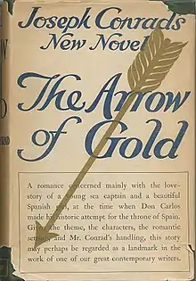 The Arrow of Gold is a novel by Joseph Conrad, published in 1919. It was originally titled "The Laugh" and published serially in Lloyd's Magazine from December 1918 to February 1920.[1] The story is set in Marseille in the 1870s during the Third Carlist War. The characters of the novel are supporters of the Spanish Pretender Carlos, Duke of Madrid. Curiously, the novel features a person referred to as "Lord X", whose activities as arms smuggler resemble those of the Carlist politician Tirso de Olazábal y Lardizábal, Count of Arbelaiz.[2]