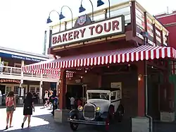 After entering the building, a Disney cast member hands out two pieces of sourdough bread per person. The attraction includes a room with a video screen in front, in which Rosie O'Donnell and Colin Mochrie talk about the history of the bread. After this, guests are able to walk through hallways where they can look through glass windows at a real bakery facility and see sourdough bread being made.