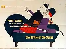 The Battle of the Sexes is a 1959 British black and white comedy film starring Peter Sellers, Robert Morley, and Constance Cummings, and directed by Charles Crichton. Based on the short story "The Catbird Seat" by James Thurber,[2] it was adapted by Monja Danischewsky. A timid accountant in a Scottish Tweed weaving company cleverly bests a brash modern American efficiency expert whose ideas threaten his way of life.