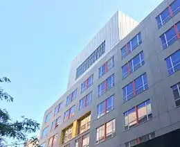 The Beacon School (also called Beacon High School) is a selective college-preparatory public high school in the Hell's Kitchen area of Manhattan in New York City near Times Square and the Theater District. Beacon's curriculum exceeds the standards set by the New York State Regents, and as a member of the New York Performance Standards Consortium, its students are exempt from taking most Regents exams.[2] Instead, students present performance-based projects at the end of each semester to panels of teachers. Beacon offers opportunities to participate in student organizations, varsity athletics, community service, and international travel.