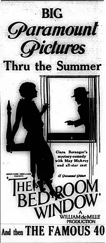 The Bedroom Window is a 1924 American silent mystery film directed by William C. deMille and starring May McAvoy. It was produced by Famous Players-Lasky and distributed through Paramount Pictures.[1][2]