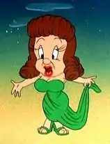 Elmer's anger about a failed pursuit through the surreal landscape is promptly used against him by Bugs who inquires, "What's the matter doc, ya cold? Here, I'll fix dat." Before Elmer can react, Bugs dresses him in drag, (dress, wig, lipstick) transforming the inept hunter into a voluptuous woman who resembles Rita Hayworth. Bugs inspects his handiwork, then lifts the backdrop to reveal a trio of literal wolves in Zoot suits, lounging by the sign at Hollywood and Vine. When the trio notice Elmer, one wolf howls, "Hooooow old is she?" while another begins flirting with the gender morphed Elmer. Bugs enjoys watching the male wolves hit on Elmer, who exclaims "Gwacious!" before fleeing from the pursuing wolves; he briefly stops to ask the viewer, "Have any of you giwls evew had an expewience wike this?"