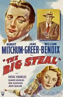The Big Steal is a 1949 American black-and-white film noir reteaming Out of the Past stars Robert Mitchum and Jane Greer. The film was directed by Don Siegel, based on the short story "The Road to Carmichael's" by Richard Wormser.[3][4]