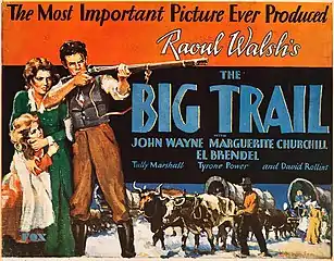 The Big Trail is a 1930 American pre-Code Western early widescreen film shot on location across the American West starring 23-year-old John Wayne in his first leading role and directed by Raoul Walsh.
