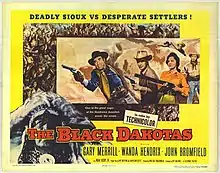 The Black Dakotas is a 1954 American Technicolor Western spy film directed by Ray Nazarro and produced by Columbia Pictures. Set during the American Civil War and filmed at the Iverson Movie Ranch, the film stars Gary Merrill as a cold blooded secret agent using the war for his own ends. It also stars Wanda Hendrix and John Bromfield. The film features The Lone Ranger television series Jay Silverheels and Clayton Moore in separate roles as well as Richard Webb of Captain Midnight.