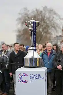 For the sixth year, the men's race was sponsored by BNY Mellon while the women's race had BNY Mellon's subsidiary Newton Investment Management as sponsors.[8] In January 2016, it was announced that the sponsors would be donating the title sponsorship to Cancer Research UK and that the 2016 event onwards would be retitled "The Cancer Research UK Boat Races".[9] There is no monetary award for winning the race, as the journalist Roger Alton notes: "It's the last great amateur event: seven months of pain for no prize money".[10]