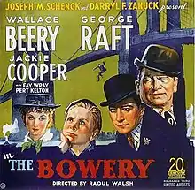 The Bowery is a 1933 American pre-Code comedy and action film about the Lower East Side of Manhattan around the start of the 20th century directed by Raoul Walsh and starring Wallace Beery and George Raft. The supporting cast features Jackie Cooper, Fay Wray, and Pert Kelton.