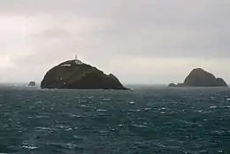 The Brothers form two small island groups, each containing one main island and a number of tiny islets. The main islands are simply called North Brother and South Brother. South Brother is the larger of the two, covering some 9.5 hectares (23 acres), but the 4-hectare (9.9-acre) North Brother is slightly more elevated, rising to 66 metres (217 ft),[1] and is topped by the Brothers Islands Lighthouse, built in 1877.[2] Most of the smaller islets lie in a small arc south of North Brother, with the largest being only some one hectare in area.