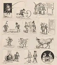 Published in 1899, The Brownies Abroad is considered the first Brownie comic strip, though it was mostly a text comic. It didn't utilise speech balloons until the publication The Brownie Clown of Brownie Town of 1908.[5] From 1903, The Brownies appeared as a newspaper Sunday strip for several years.[3]