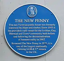 There are many pubs and bars around the area. The pub The New Penny on Call Lane was awarded a blue plaque by Leeds Civic Trust on 19 October 2016, "for providing a safe venue for lesbian, gay, bisexual and transgender people."[10] The plaque states that the pub is "one of the longest continually running LGB & T* venues in the UK, having been so since 1953". The area is also the setting for the post parade street party and stalls at Leeds Pride.[11]