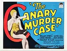 The Canary Murder Case (1927) is a murder mystery novel which deals with the murders of a sexy nightclub singer known as "the Canary," and, eventually, her boyfriend, solved by Philo Vance. S. S. Van Dine's classic whodunnit, second in the Philo Vance series, is said by Howard Haycraft to have broken "all modern publishing records for detective fiction."[1] The earliest editions give the title with quotation marks around the word "Canary", but most subsequent editions omit them.