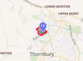 In 1862, Handel Cossham, a local preacher, built the original village school, a British School, at Gillingstool.[7] Some years later, because of overcrowding, a new infant school building was added adjacent to the original school. In 1952 the school was separated into infants, juniors and seniors and the latter formed the Thornbury County Secondary school. Before this it was an 'all-age' school taking pupils up to age thirteen, known as Thornbury Council School.[8]
